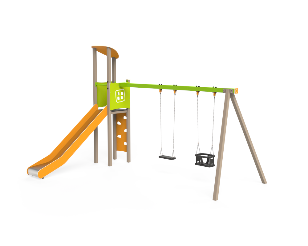 Eco Enkel Rutschkana (artikelnummer BLFJ021) är en premium lekplatsanordning med litet platsbehov, särskilt framtagen för förskolor, lekparker och bostadsgårdar. Den robusta konstruktionen i varmförzinkat stål med dubbla pulverlackerade lager gör den motståndskraftig mot väder och slitage. Sidopanelerna är tillverkade i 15 mm UV-resistent HDPE, vilket gör produkten underhållsfri och långlivad.