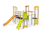 Fyrtorns klätterborg (artikelnummer BLFJ027) är en premium lekplatsanordning för barn i åldrarna 3–14 år. Den består av fyra torn som binds samman med olika klätter- och balansmoment. Konstruktionen är underhållsfri och byggd i metall med ytbehandling för hög motståndskraft mot väder och slitage. Tornens väggar, tak och huvudsakliga ytor är tillverkade av UV-beständiga HDPE-skivor, och gångytorna har halksäkert underlag.
